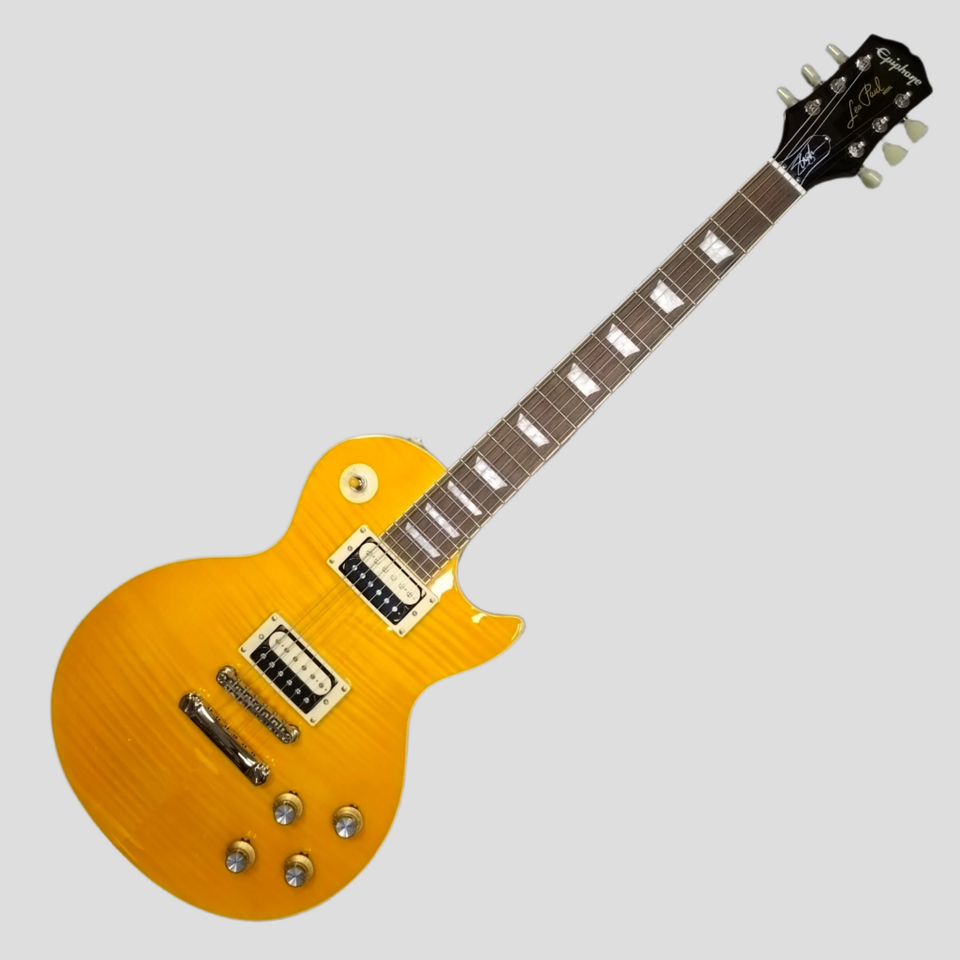 Perfect for every stage and players of all levels, the Epiphone Slash Les Paul™ Standard features a mahogany body, maple cap with AAA flame maple veneer, and Slash’s personal touches, including a C-shape neck profile, Epiphone Custom ProBucker™ Alnico 2 pickups that are exclusive to the Epiphone Slash Les Paul models, CTS® potentiometers with Orange Drop® capacitors, and Epiphone Strap Locks. Exclusive to the Slash Collection is Slash’s “Skully” signature drawing on the back of the headstock.