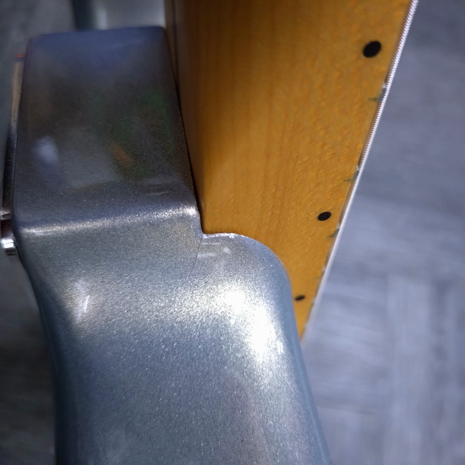 Missing the backplate, a few dents and dings on the underside of the body as well as a tiny nick in the headstock and a standard issue Fender lacquer crack at the neck pocket (but only on one side, result!) See pics for details.