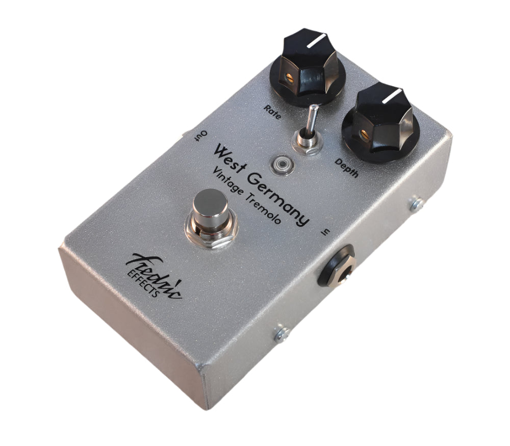 The Fredric Effects West Germany Vintage Tremolo reworks the classic West German pedal, with a neat MXR-sized enclosure, a flashing LED rate indicator when the effect is engaged, and a more useful depth control. This circuit is famed for it's warmth, with a smooth waveform (not choppy or stuttery like some trems) akin to that found on vintage Fender amps.