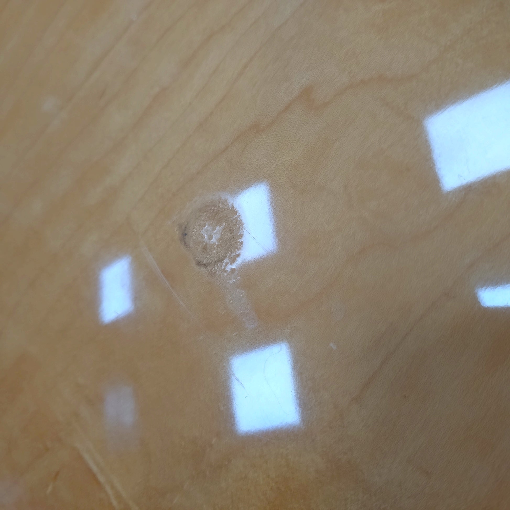 One unfortunate burn in the nitro (pictured) can be found on the back of the body from a strap being folded underneath the guitar in the case.