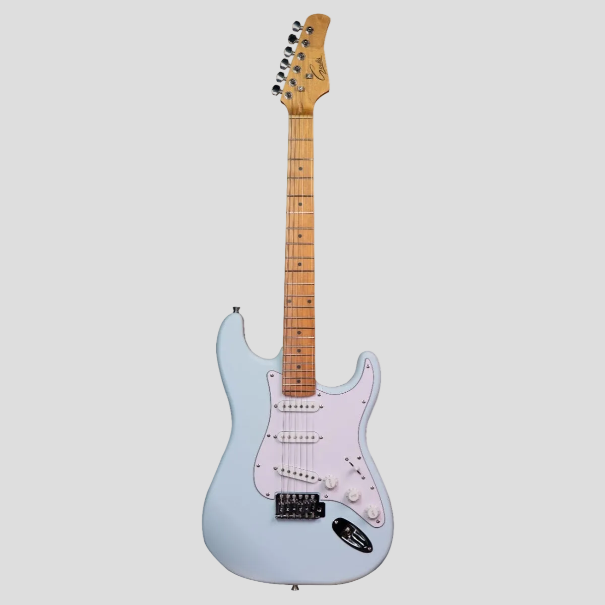 Featuring three single-coil pickups, this guitar offers a versatile array of classic tones, perfect for fans of rock and roll and beyond. Tone controls include a five-position pickup selector, a master volume knob, and two tone controls, allowing you to shape your own distinctive sound.