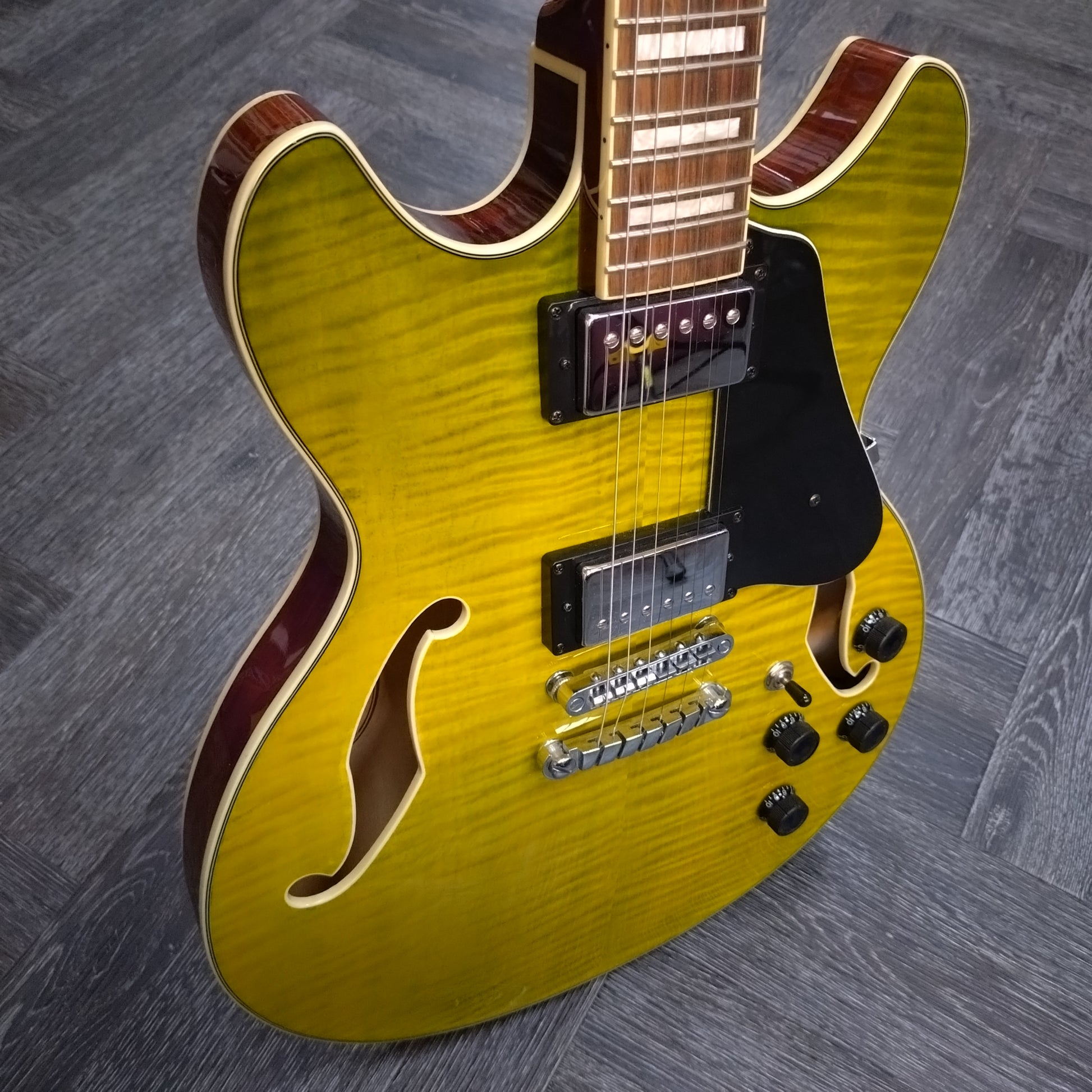 Controls: Two volumes / two tones / 3-way toggle pickup selector