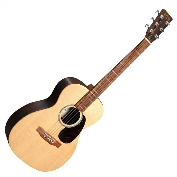 The X Series is made to play. The 0-X2E Cocobolo is a small body acoustic-electric featuring a hand-rubbed satin spruce top with an elegant abalone pattern rosette and eye-catching cocobolo pattern high-pressure laminate (HPL) back and sides for added durability and looks, without sacrificing that classic Martin tone. Playability enhancements include a thinner fingerboard with a gently beveled comfort edge and refined string spacing, and a modernized bridge contour for a smooth and comfortable playing experience. It also features a select hardwood neck, fingerboard, and bridge for improved sound and sustain, and Martin E-1 electronics with a built-in chromatic tuner and volume, tone, and phase controls. The 0-X2E Cocobolo provides clear, crisp trebles with delicate bass, unplugged or plugged in, letting you play how you want, wherever you want. All X Series models come with a softshell case.