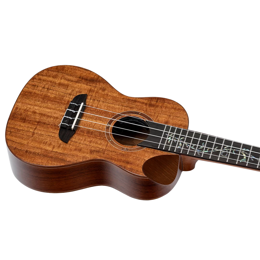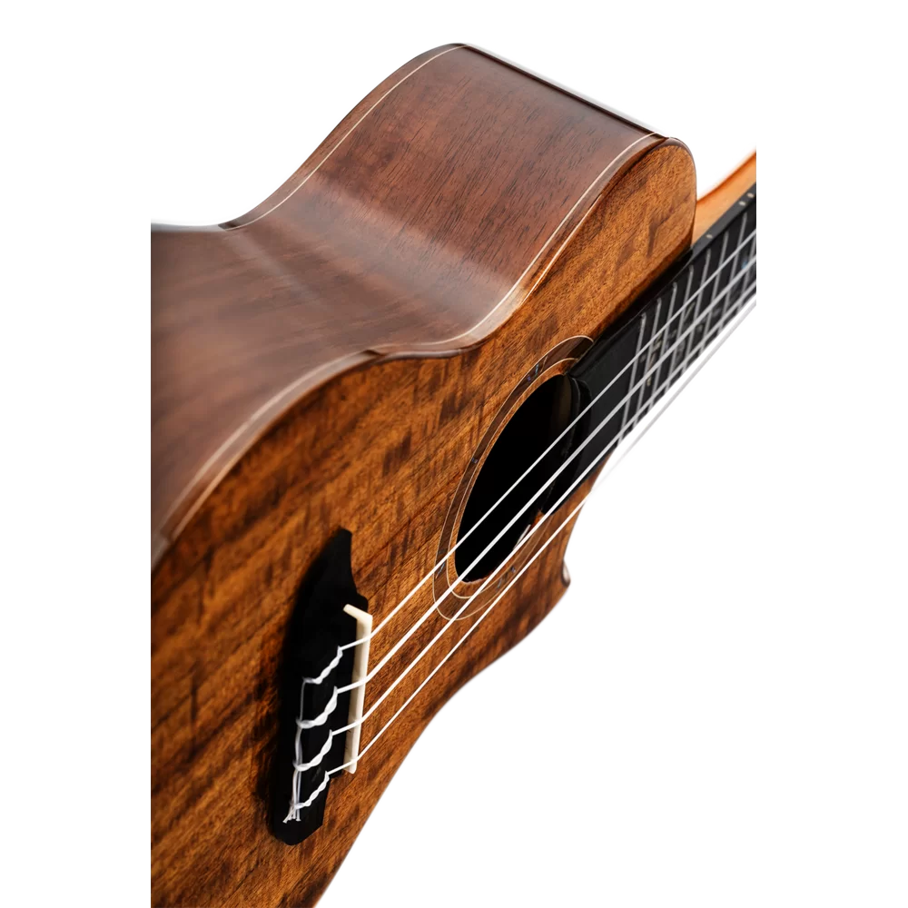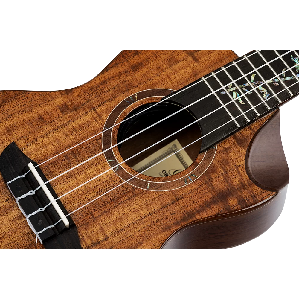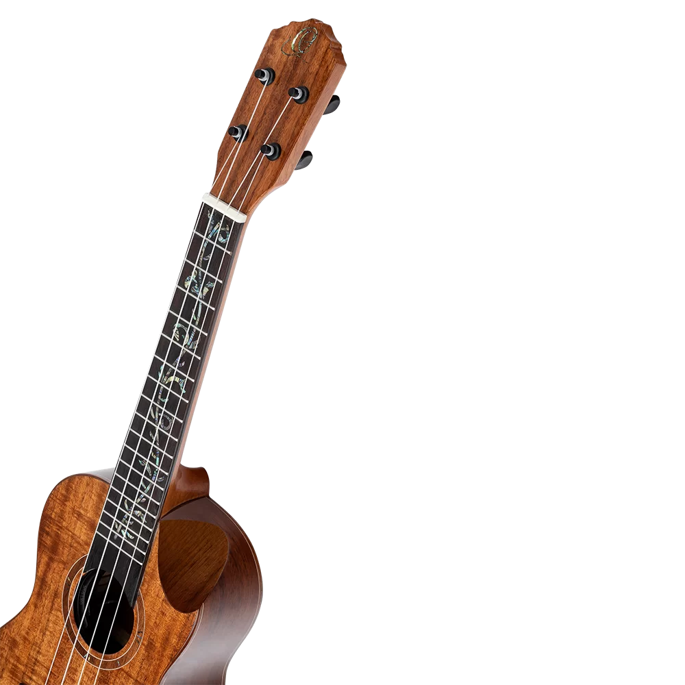 Ortega's Elite Series ukuleles are top-tier instruments made of the best materials with exceptional craftsmanship. All models feature a solid-top made from various exotic woods, a brand-new MagusFly pickup system, and Graph Tech® Ratio tuning machines. The scalloped cutaway allows you to easily reach even the highest frets. The ukulele's built-in preamp with rechargeable battery can be easily equipped and removed and makes it ideal for any occasion. A padded elite gig bag comes with each ukulele.