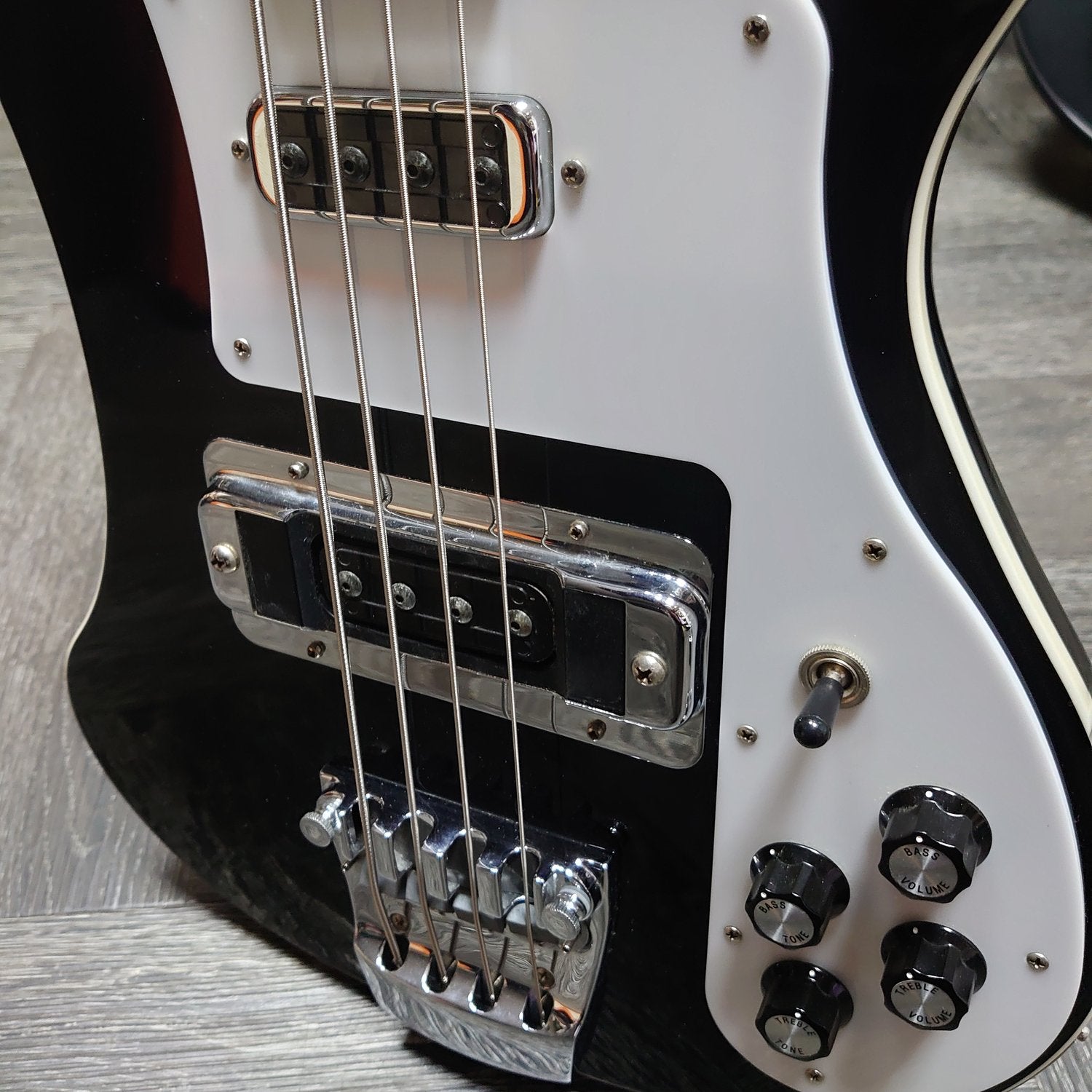 The icon, the Classic Rickenbacker bass - famous for its ringing sustain, treble punch and solid underlying bass tones. A subtle strip of binding graces the elegantly curved body and fingerboard. Deluxe triangular inlays and stereo capability are standard features. This bass boasts a frankly absurd list of legendary users.