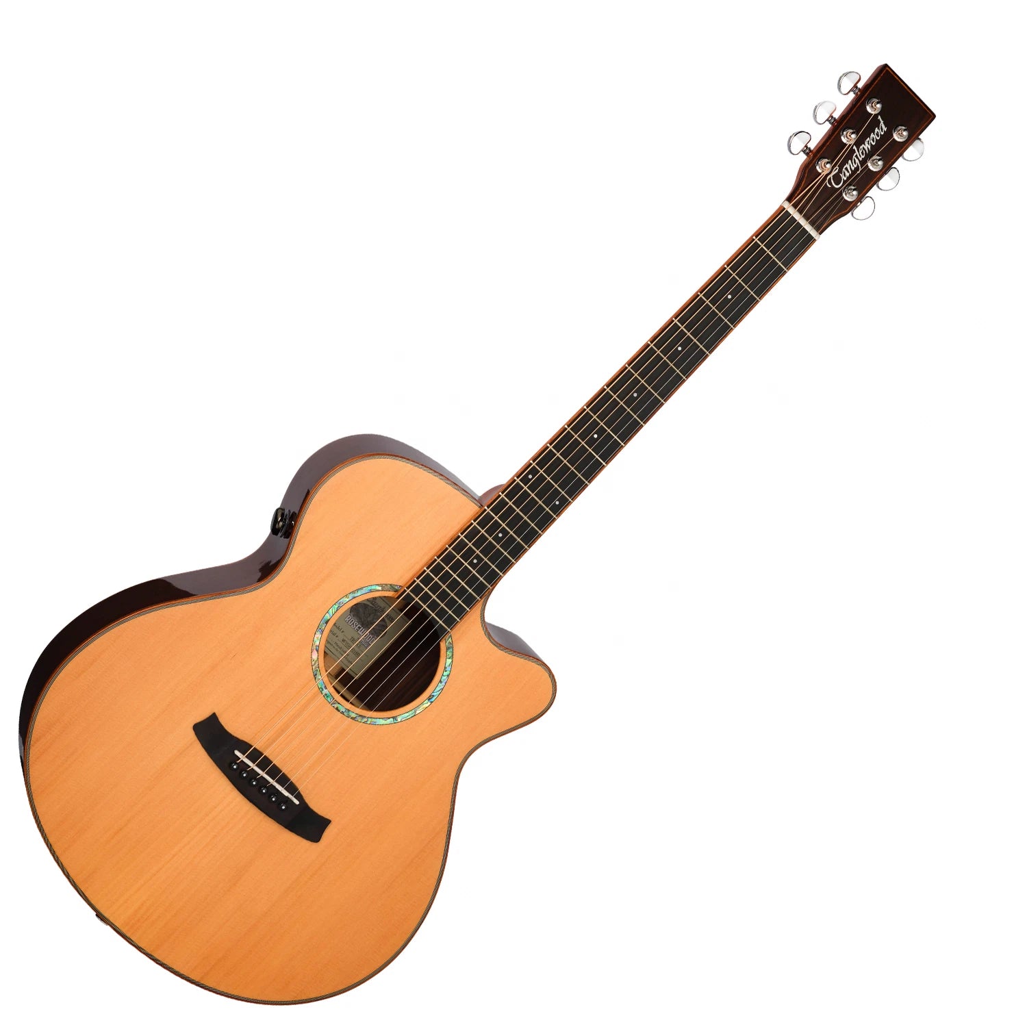 The Rosewood Smart Series TRS4CE guitar is a refined, performance-ready instrument that brings together premium tonewoods, elegant design, and advanced electronics. Crafted with a Cutaway Super Folk body shape, the TRS4CE offers a sleek, comfortable playing experience, ideal for guitarists who value both accessibility to higher frets and a dynamic acoustic voice. Its ergonomic contours make it suitable for a wide range of playing styles, from delicate fingerpicking to energetic strumming.