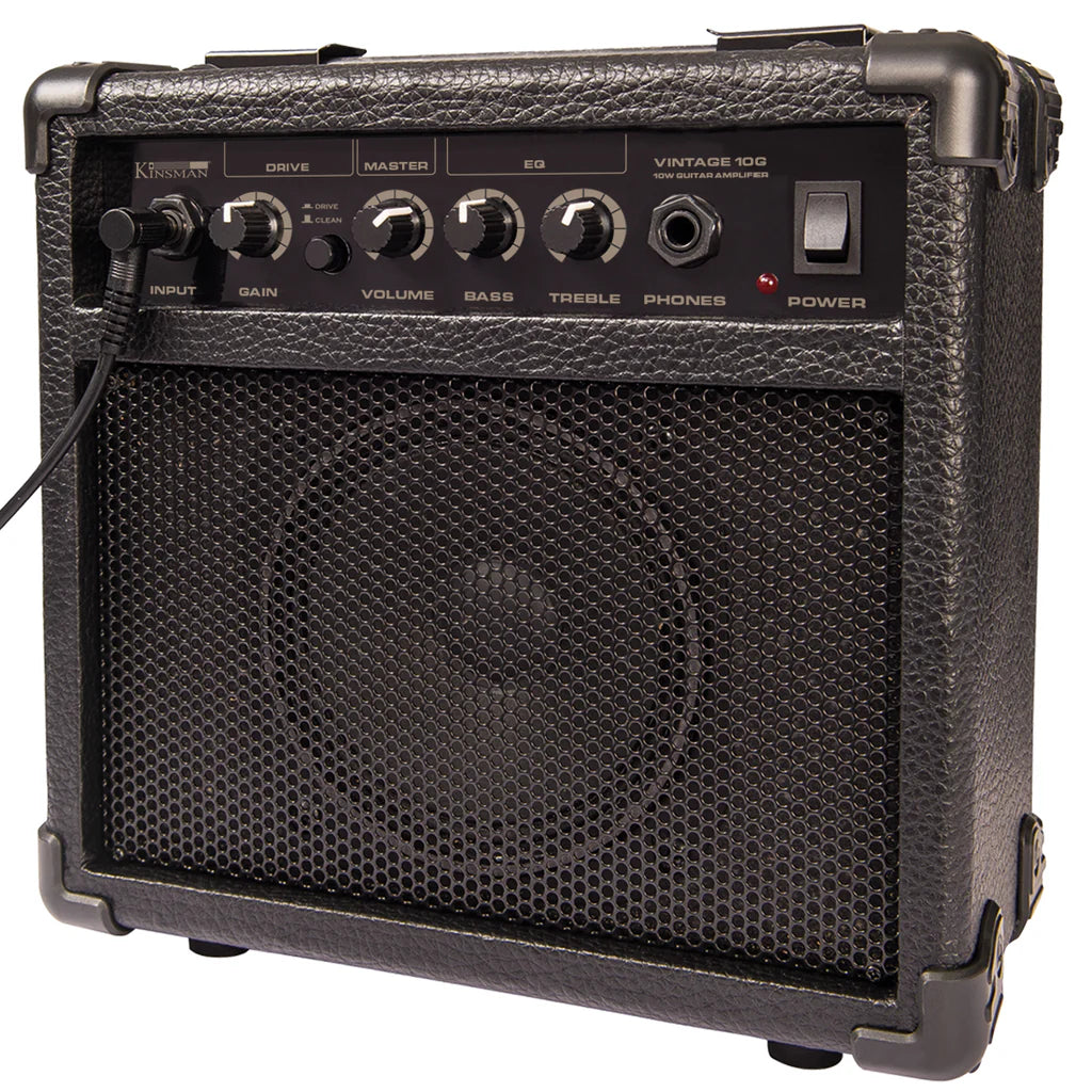 The V60 guitar pack also includes a Kinsman 10 watt combo amplifier with Gain Control, push button Drive/Clean, 3-band EQ and for silent practicing a handy headphone socket.