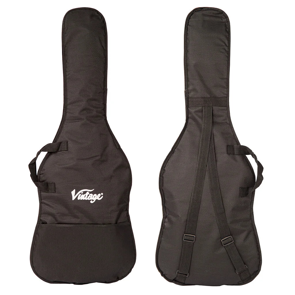This superior guitar pack includes a Vintage branded padded carry bag, guitar strap, guitar cable, clip-on tuner, pick and even a spare set of strings.